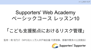 2026年1月24日 / 最終更新日時 : 2026年1月24日 Supporters’ Supporter ベーシックコース 保護中: B011_こども支援拠点における情報リテラシーの重要性 このコンテンツはパスワードで保護されています。閲覧するには以下にパスワードを入力してください。 パスワード: