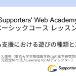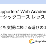 2025年6月19日 / 最終更新日時 : 2025年12月16日 Supporters’ Supporter ベーシックコース B006_こども支援における遊びの工夫 このレッスンでは、こども支援における遊びの工夫について学びます。