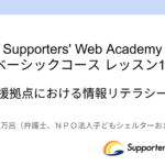 2025年6月19日 / 最終更新日時 : 2025年9月27日 Supporters’ Supporter ベーシックコース B011_こども支援拠点における情報リテラシーの重要性 このレッスンでは、こども支援拠点における情報リテラシーの概要とその重要性についての学びを提供します。